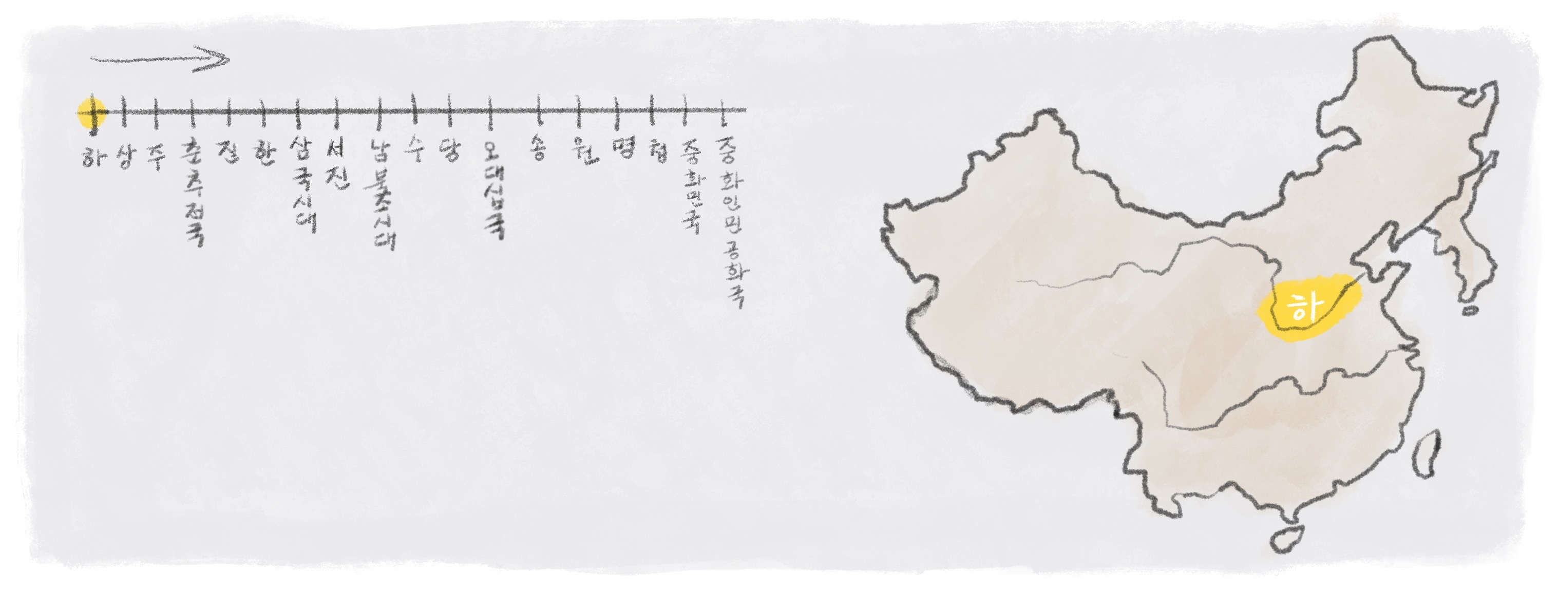 아주 오래전 이야기라 정확히 어떤 일이 있었는지 알기 어렵고, 비록 전설 속 이야기일지도 모르지만, 하나라의 이야기는 우리에게 신화와 역사의 관계에 대해 생각해보게 하죠. 우왕의 이야기처럼 많은 나라들이 자신들의 시작을 영웅적인 인물과 연결 짓곤 합니다. 나라마다 기록이 분명하지 않은 나라의 ‘탄생’을 멋진 신화나 전설로 역어서 이야기를 만들죠. 우리나라에도 단군신화가 있죠? 이런 이야기들이 어떻게 만들어지고, 왜 우리에게 중요한지 생각해보는 것도 역사를 공부하는 중요한 부분이라고 생각해요.